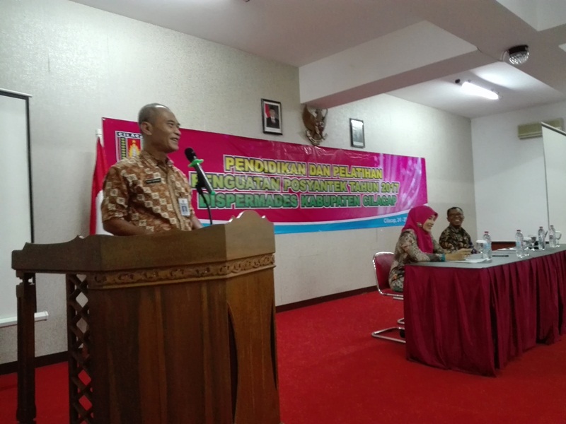 “Saya menghimbau semua peserta dapat mengikuti dan menyimak dengan baik kegiatan pelatihan penguatan Posyantek tahun 2017 yang akan disampaikan oleh beberapa narasumber dari Dispermades Kabupaten Cilacap. Karena dari hasil kegiatan pelatihan ini akan ada tindak lanjut yang akan saudara kerjakan seperti yang telah saya sampaikan. Oleh karena itu simak dan tanyakan kepada narasumber apabila ada hal-hal yang dirasakan kurang jelas” Kata Teguh