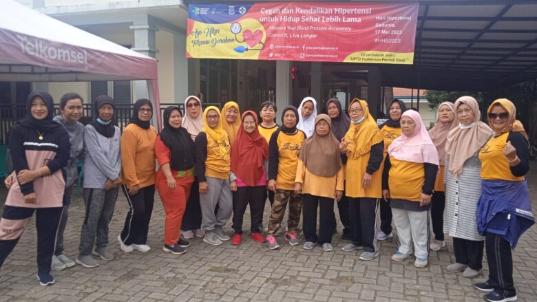 Pagi ini, puskesmas Pondok Ranji yang berlokasi di jalan Beruang II, RT.02/RW.02, Pd. Ranji, Kec. Ciputat Tim., Kota Tangerang Selatan, pada hari sabtu 20 Mei 2023 mengadakan senam bersama masyarakat sekitar menjelang hari hipertensi sedunia .
